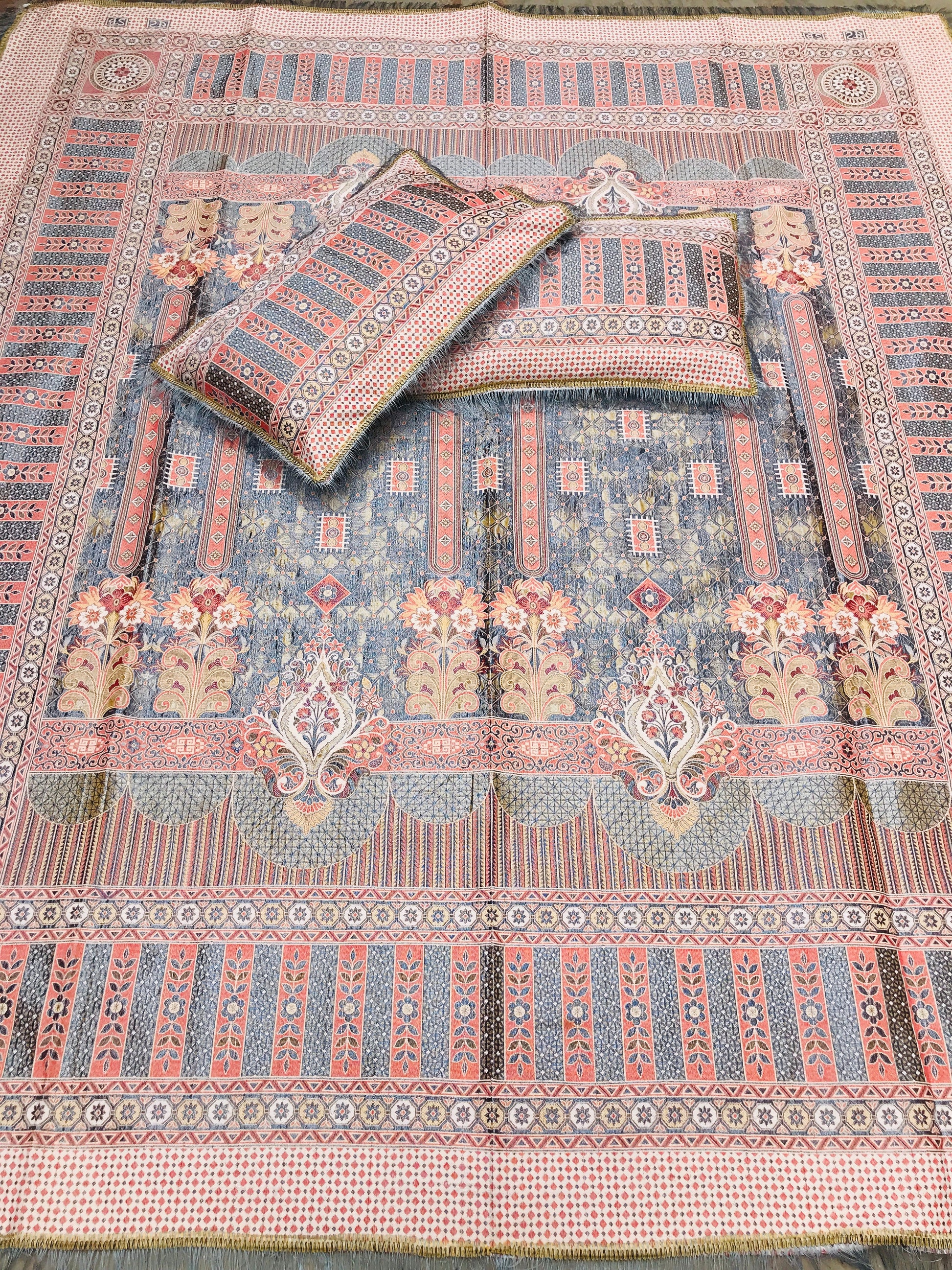 Transform your bedroom with the Goldstar 3-piece bedsheet set, made from exquisite fancy fabric for a silky-smooth feel. Offering a sophisticated, premium look, this set includes 1 flat sheet and 2 matching pillow covers, bringing both comfort and style to your space. Perfectly designed to fit King/Double beds with ease.